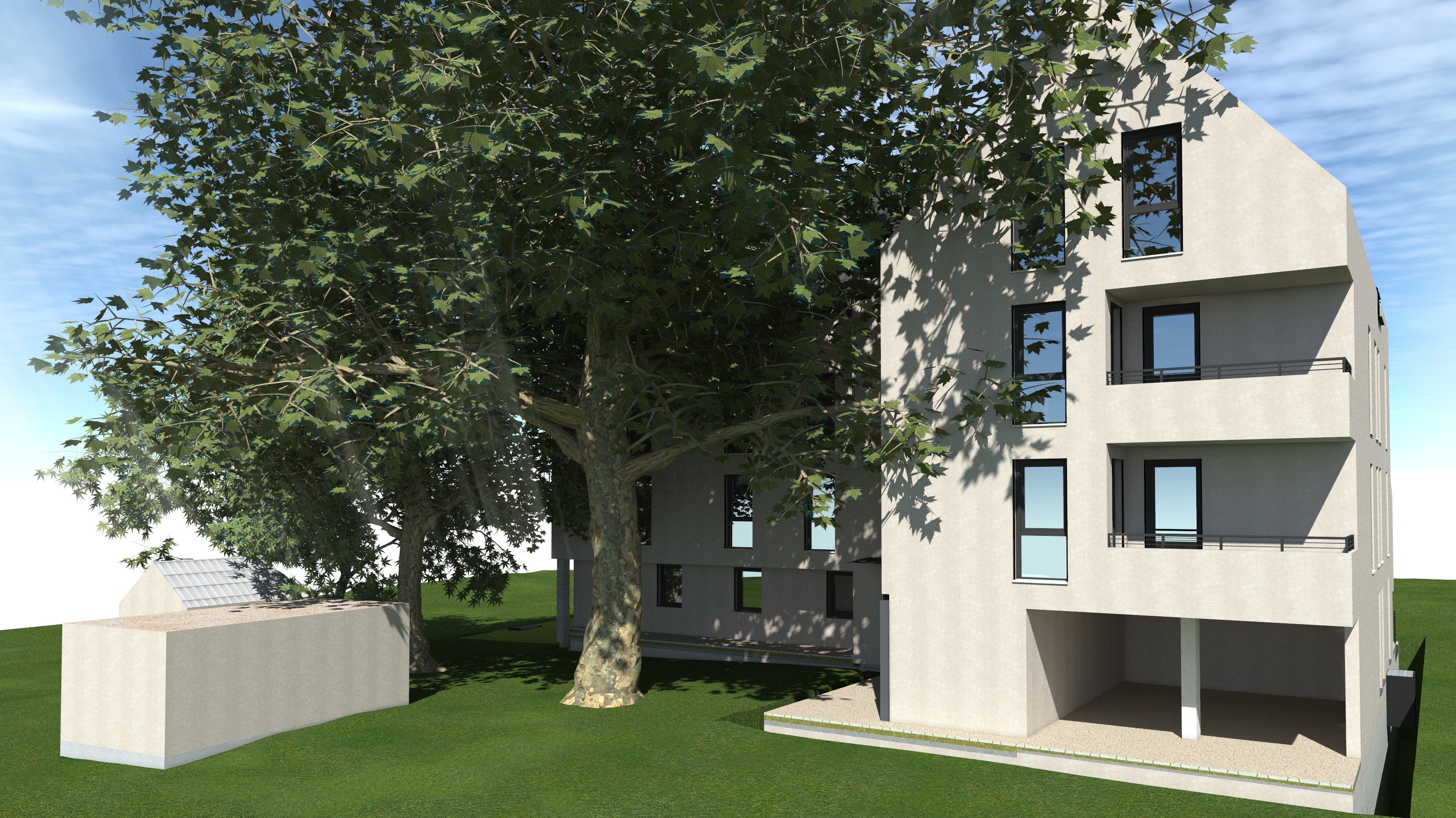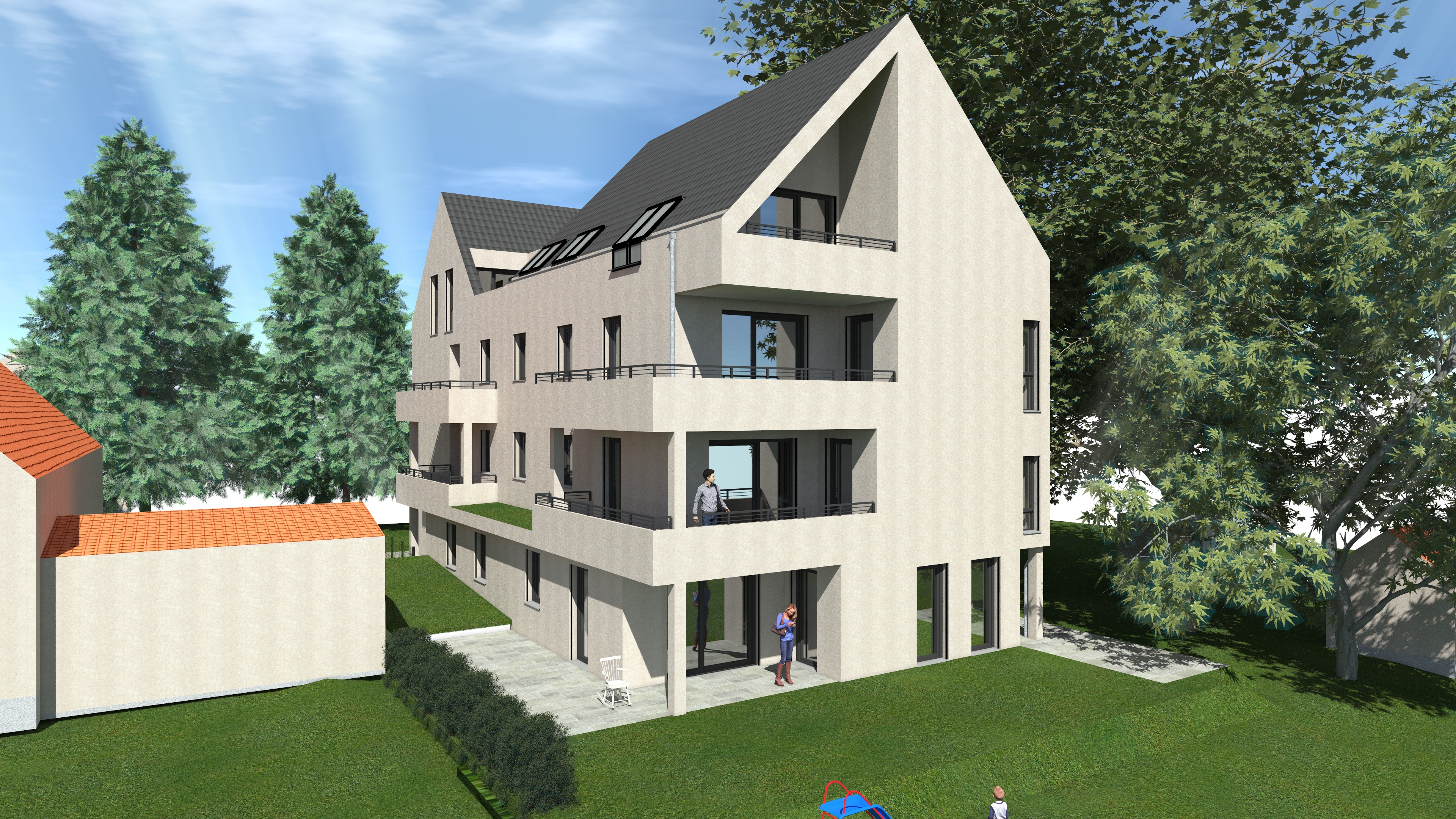 Das Bauvorhaben Hans-Herold-Straße 1 in Herzpgenaurach umfasst den Neubau von 10 Wohnungen unterschiedlicher Größen einschließlich Keller und Tiefgarage. Das Gebäude mit Satteldach wird in Massivbauweise errichtet. Es sind zwei Wohnungen im Erdgeschoss gemäß dem R-Standard (rollstuhlgerecht, barrierefrei) zu errichten. Alle Wohnungen erhalten über den Aufzug und das Treppenhaus eine direkte Verbindung zum Keller und der Tiefgarage mit 12 PKW-Einstellplätzen. Im Keller befinden sich die Kellerabteile, der Hausanschlussraum und die Fernwärmeübergabestation. Neben dem Eingangsbereich im Erdgeschoss sind der Fahrradabstellraum, der Raum für die Mülltonnen und 2 weitere PKW-Stellplätze vorgesehen.